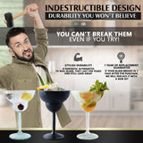 Unbreakable Margarita Glasses- 14oz Large Margarita Glass Kit - Elegant Gift Box - Reusable Giant Indoor, Outdoor Drinkware for Tequila, Martini, Cocktails BLACK
